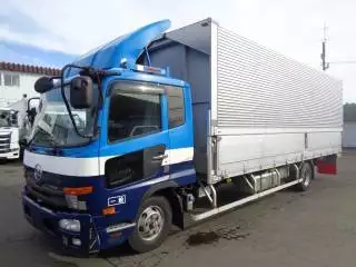 メーカー 日産UD 形状 アルミバン・ウィング 最大積載量 2,500kg 年式 H27.10 型式 TKG-MK38L 走行 27万km 内寸 長さ721cm x 幅241cm x 高さ241cm 車検 -