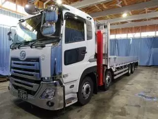 未使用 車検付 UD 4軸低床セルフクレーン付き平ボデー 古河4段 ラジコン リーフサス AT ...