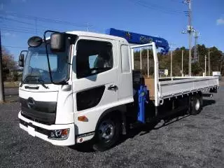 メーカー 日野 形状 平ボディ・クレーン付 最大積載量 2,550kg 年式 H30.4 型式 2KG-FD2ABA 走行 1,700km 内寸 長さ550cm x 幅214cm x 高さ40cm 車検 -